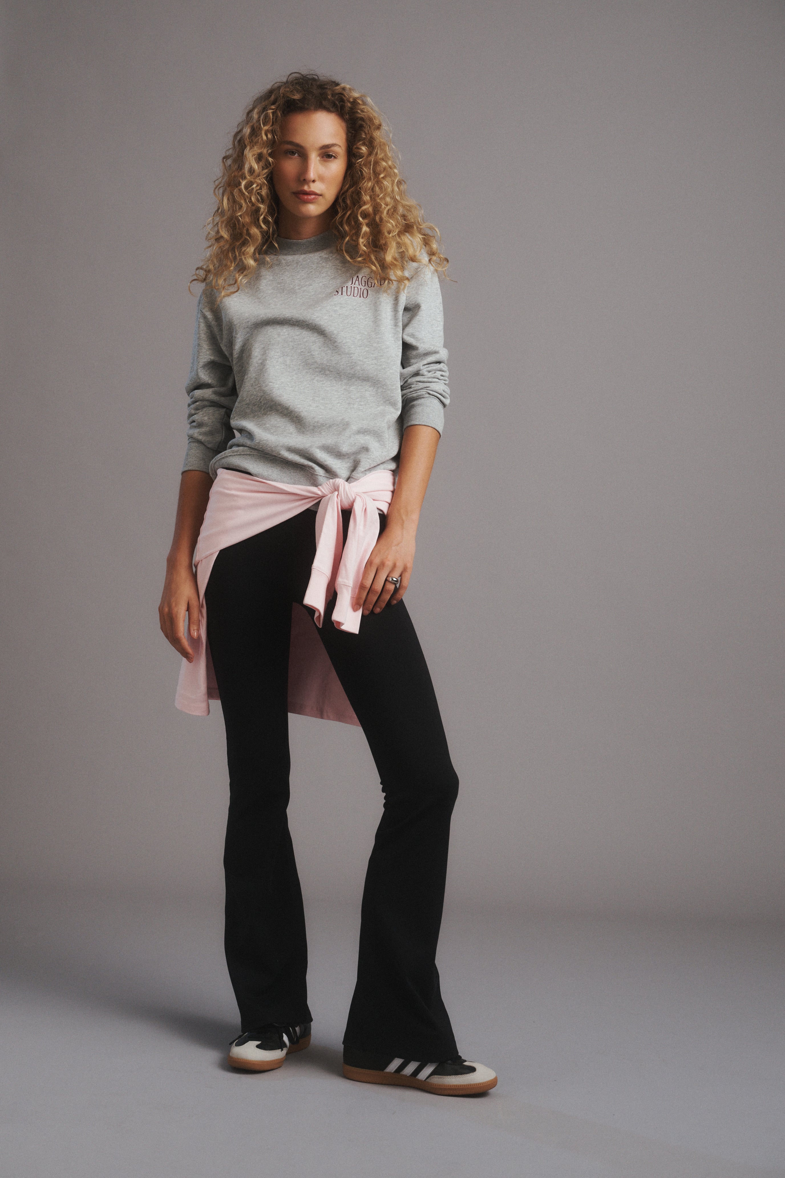 Designed with classic ribbed trims at the neck, sleeves, and hem, it’s finished on a grey marle base with floral-inspired plastisol logo detailing for a fresh, feminine twist on a classic sweater.