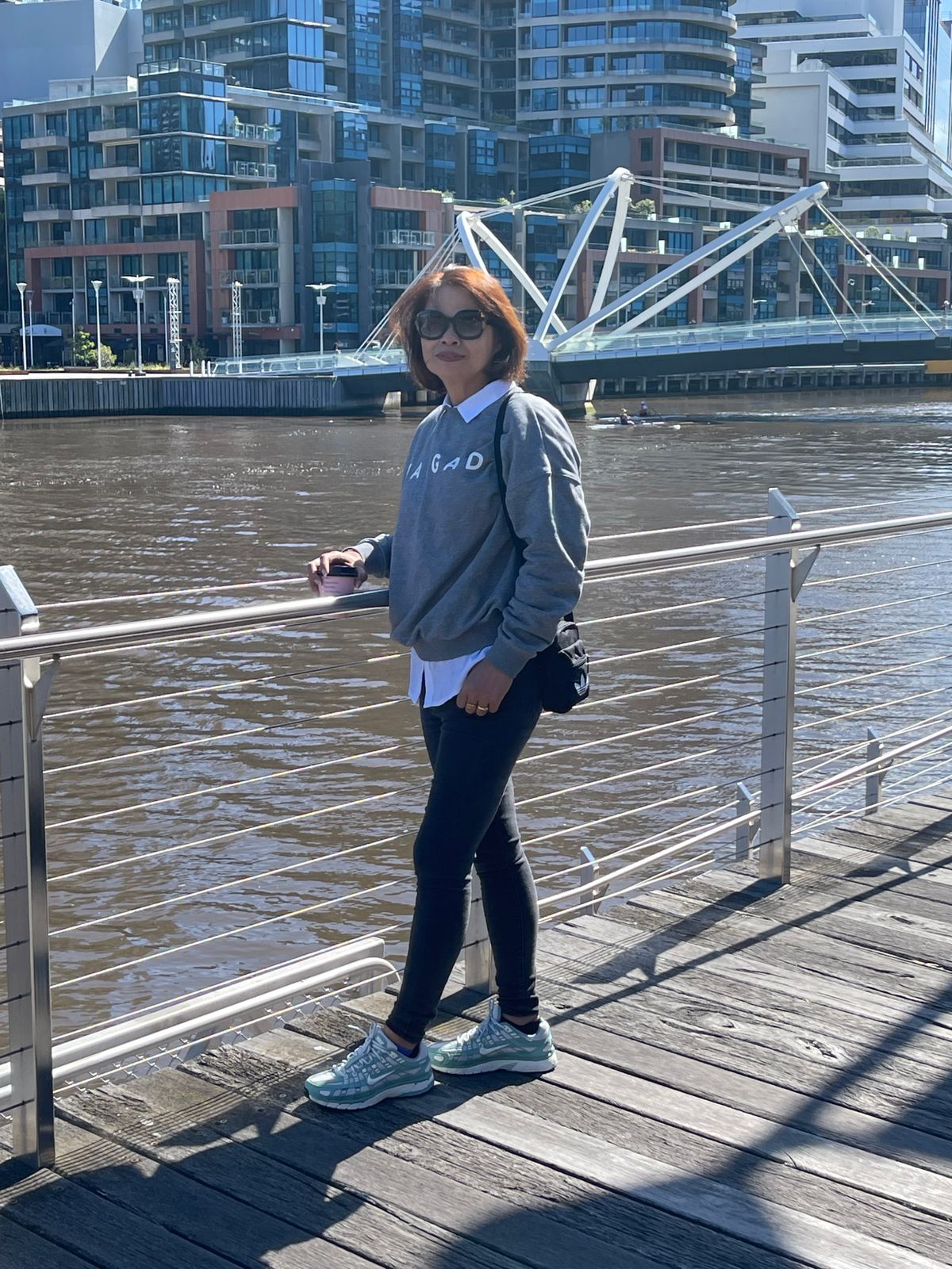 - Sam is wearing size small, which is equivalent to an Australian women’s size 8. She is 178cm tall with a 64cm waist, 84cm bust and 89cm hips.