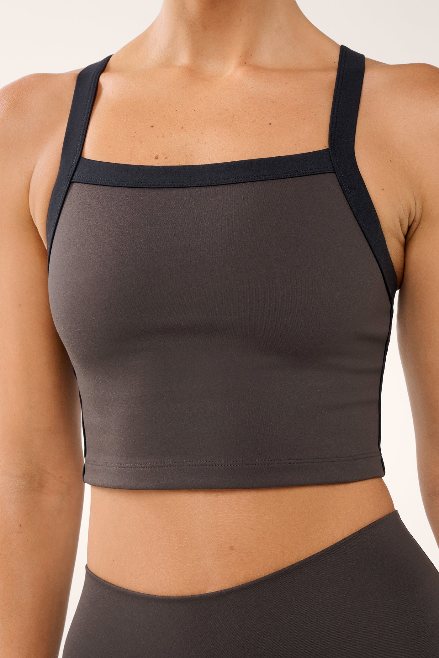 rue longline contrast strap tank coffee bean