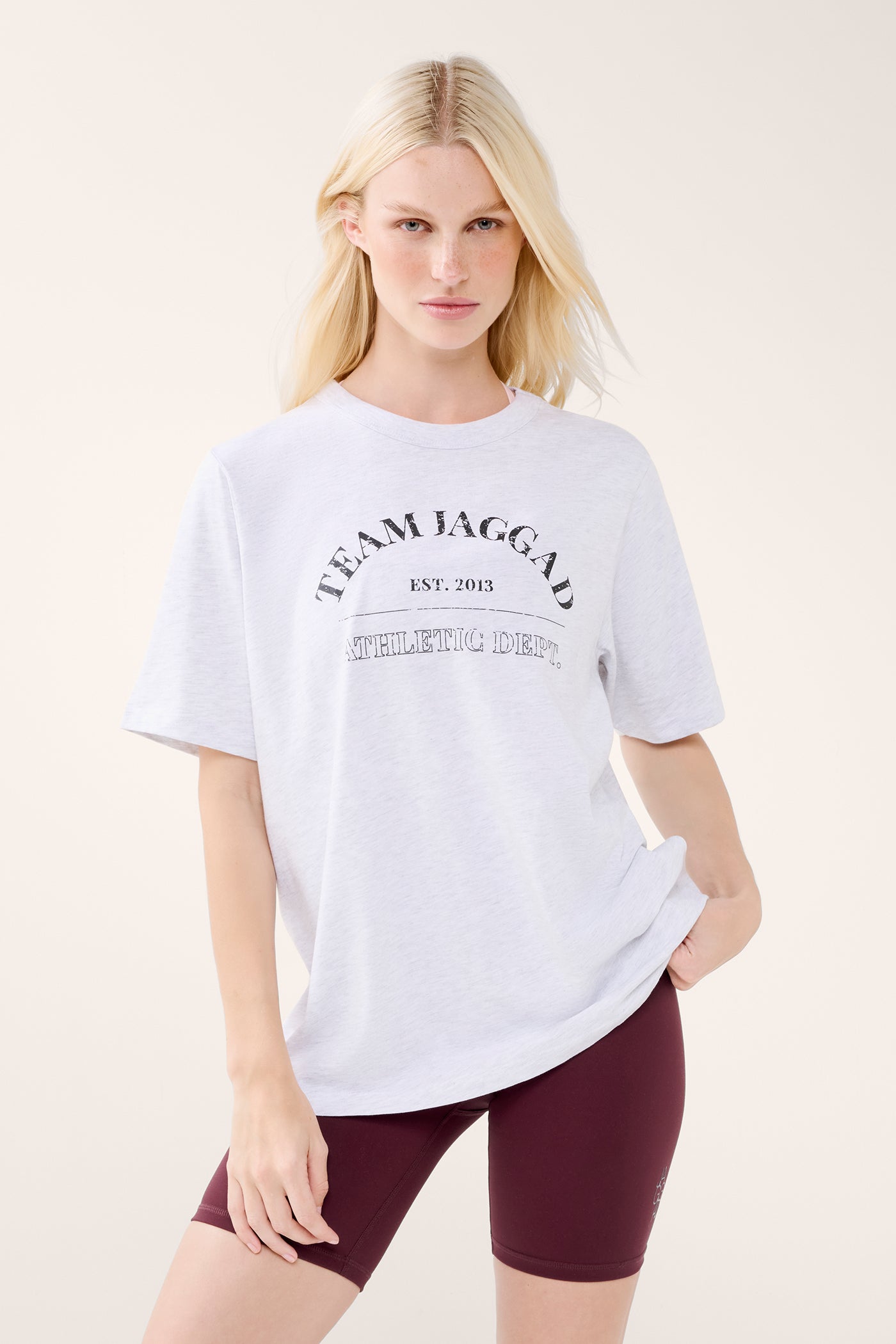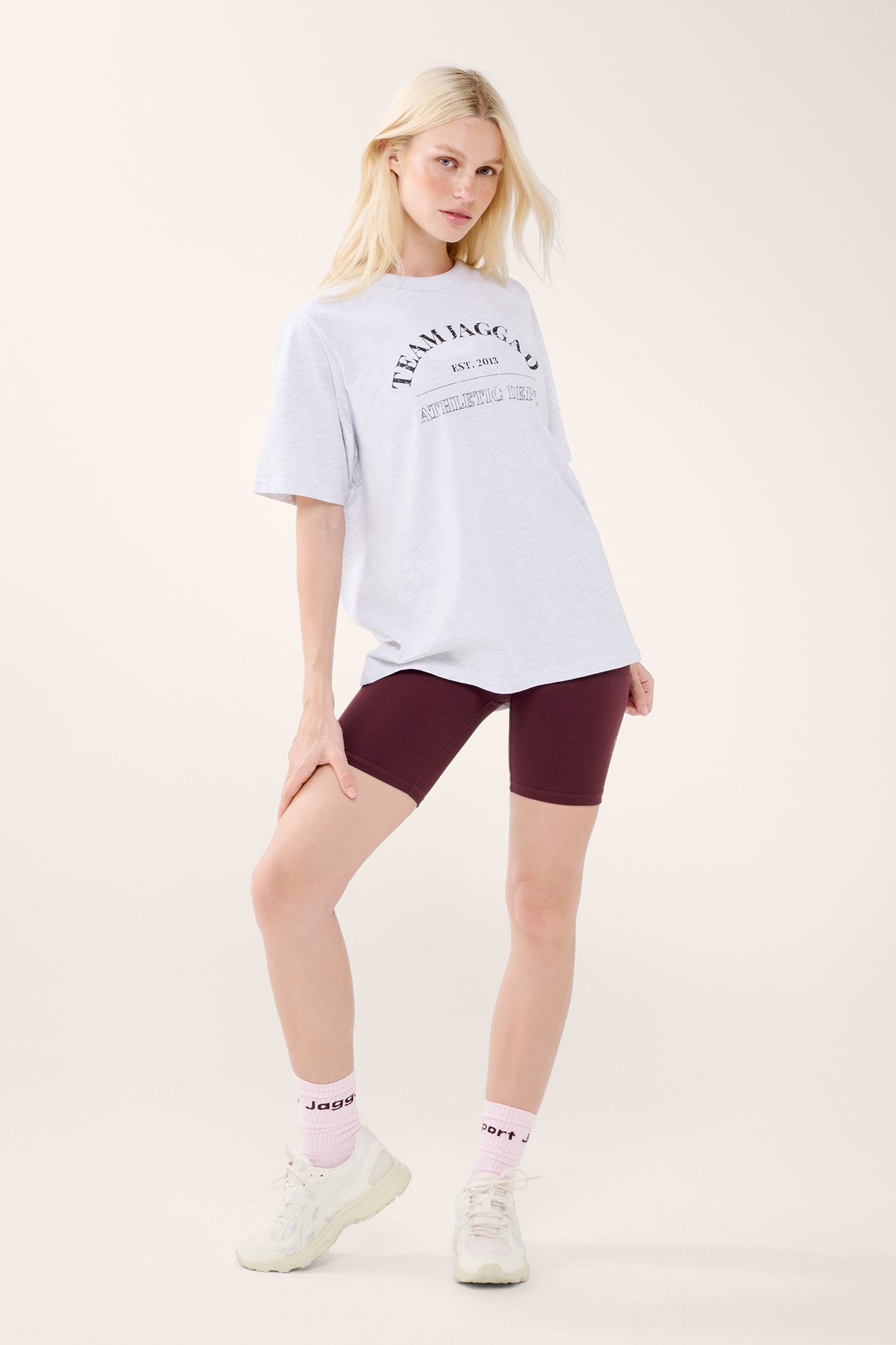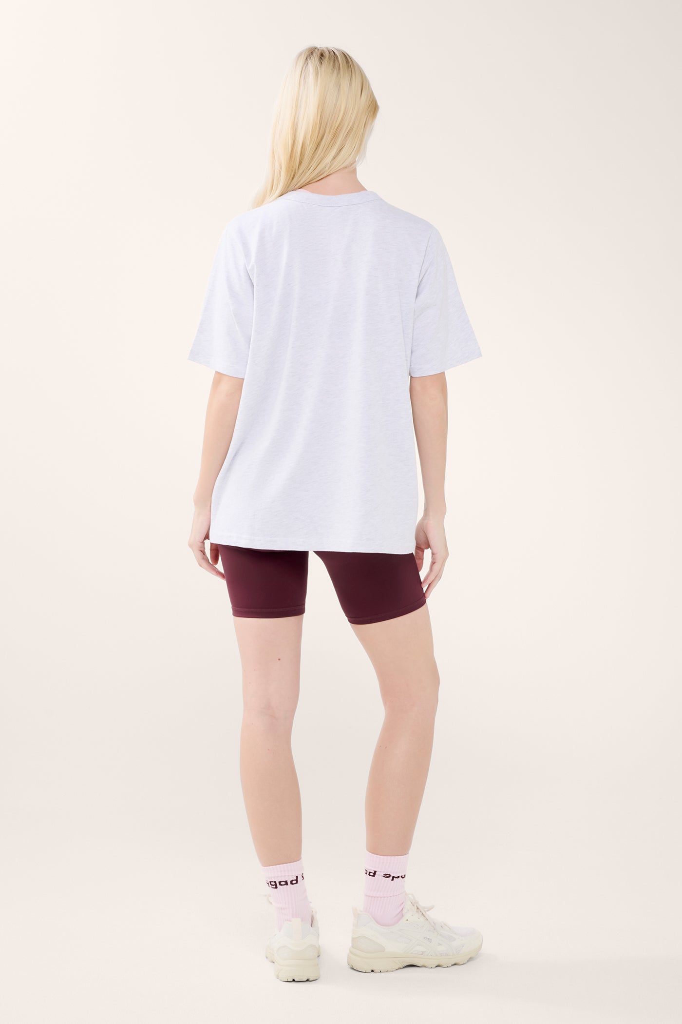 Level up your sporty look with the Downtown Boxy Tee. With a athletic inspired print, this mid-weight 100% cotton tee in white grey marle is an effortless addition to your active wardrobe.