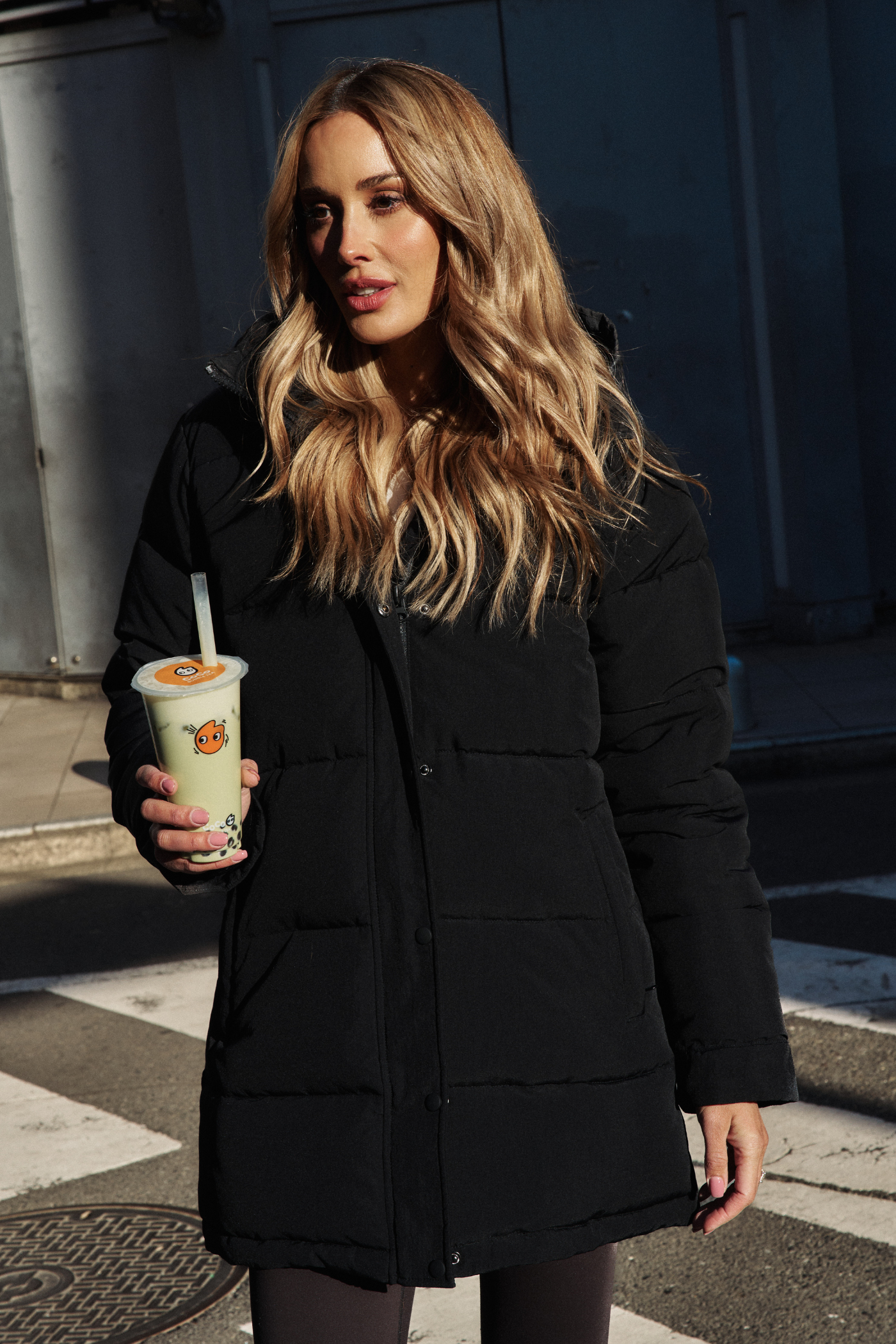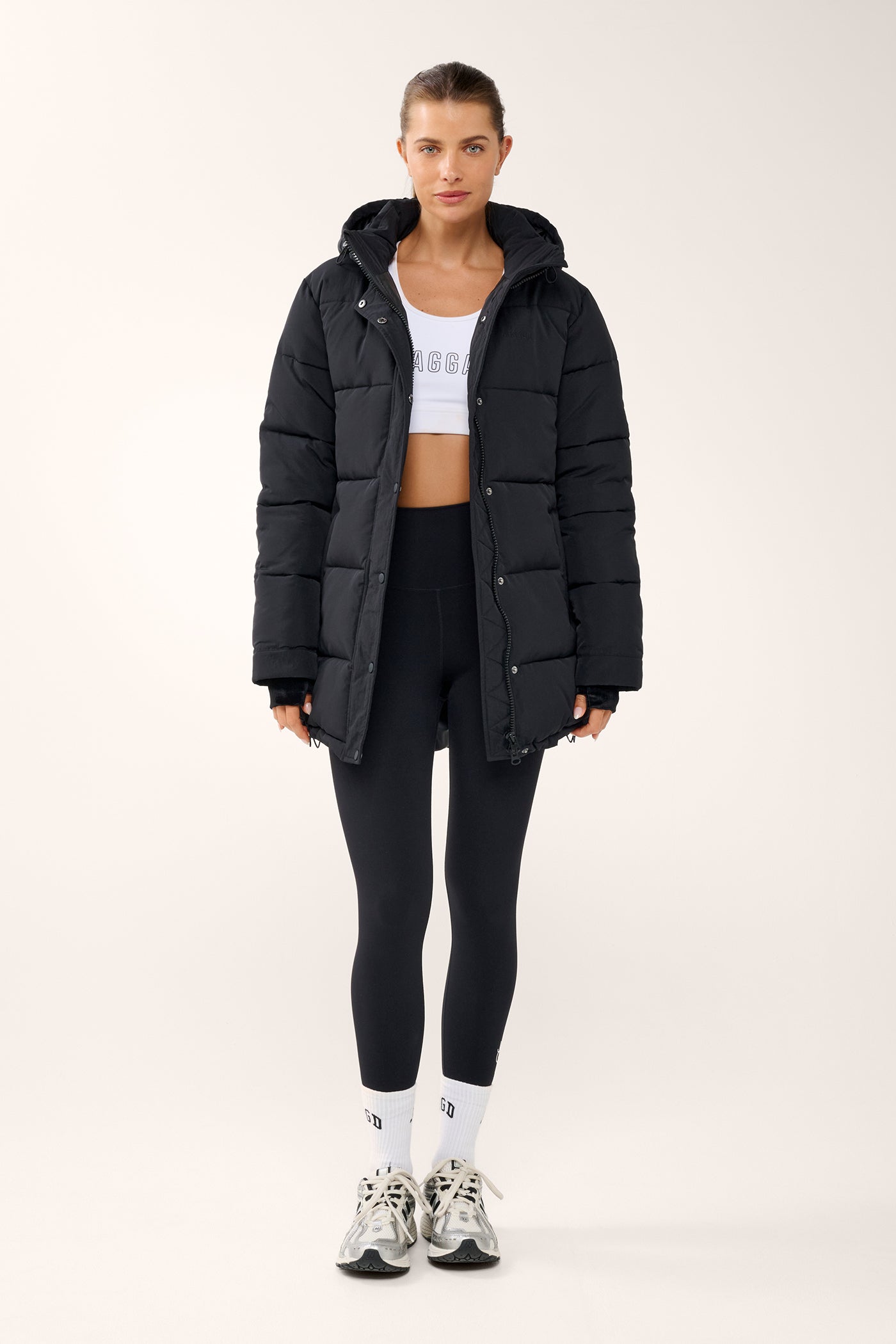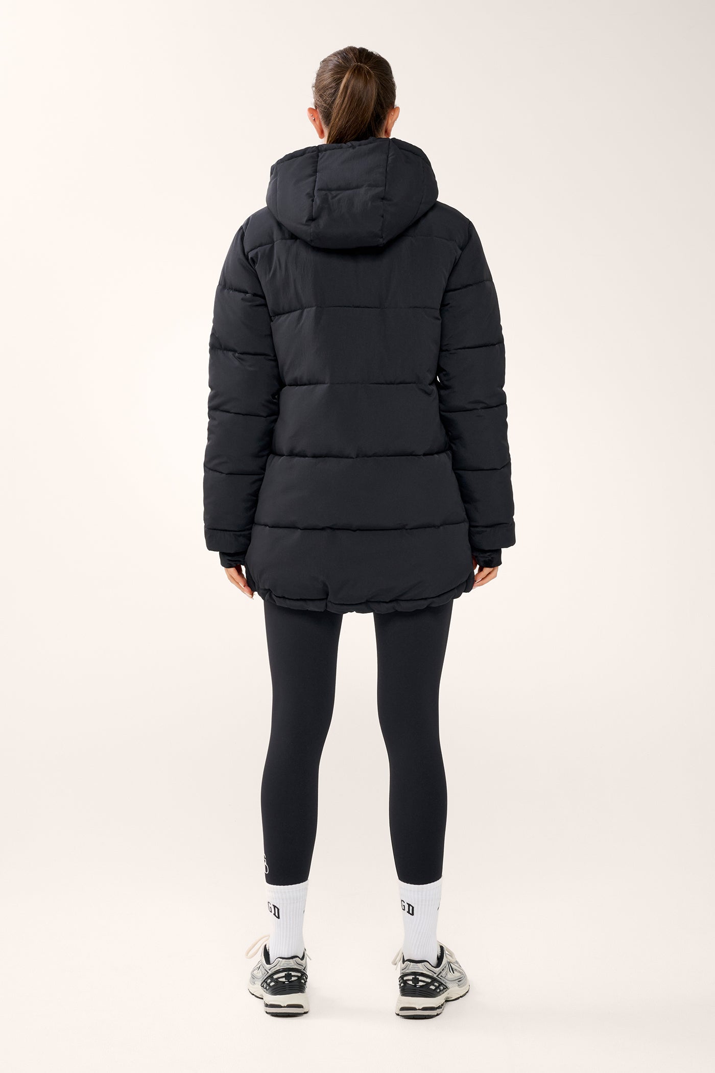 True to size and fits like a warm hug. Love the sewn in hand/finger warmers and the length. Looks feminine and easy to style.