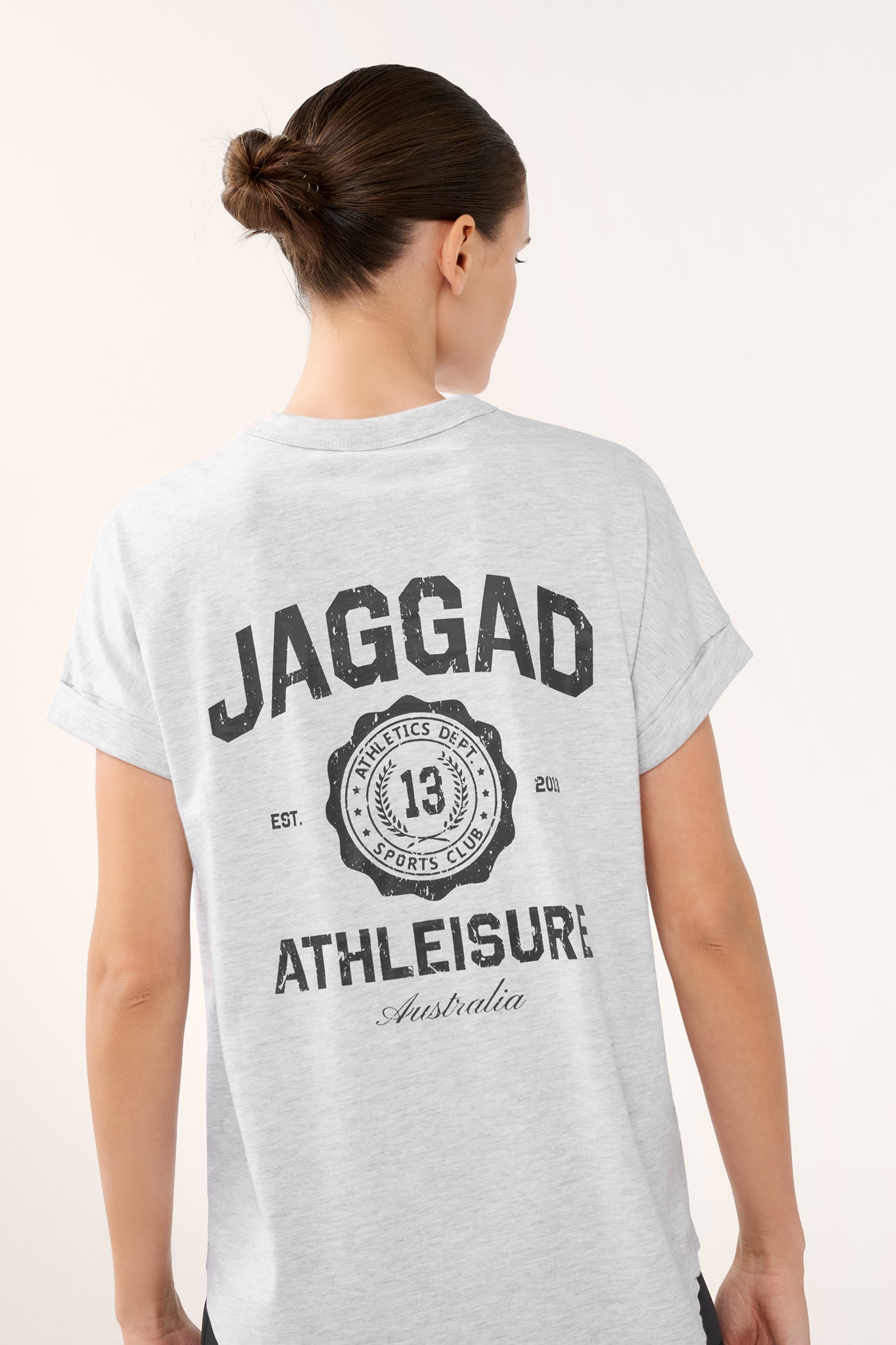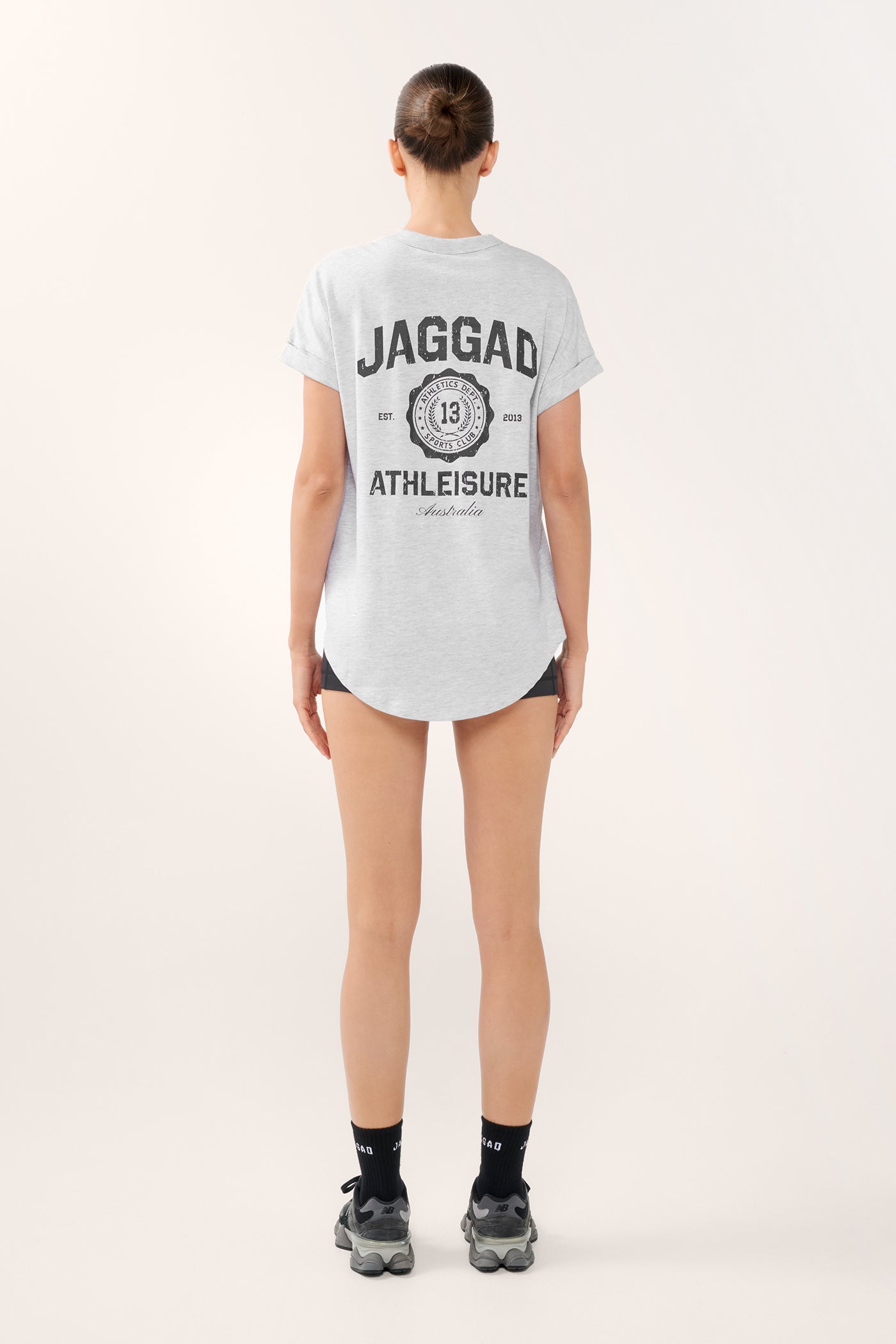 Sporty, relaxed and a little retro. The State Cuffed Sleeve Tee is cut in a loose fit from soft jersey in a light white marle shade. Designed with cuffed sleeves and a scalloped hem, it brings a laid-back, flattering shape to your everyday rotation. Finished with bold varsity-style logos and badges, this tee serves up collegiate energy with a modern twist - perfect for easy styling on or off the street.